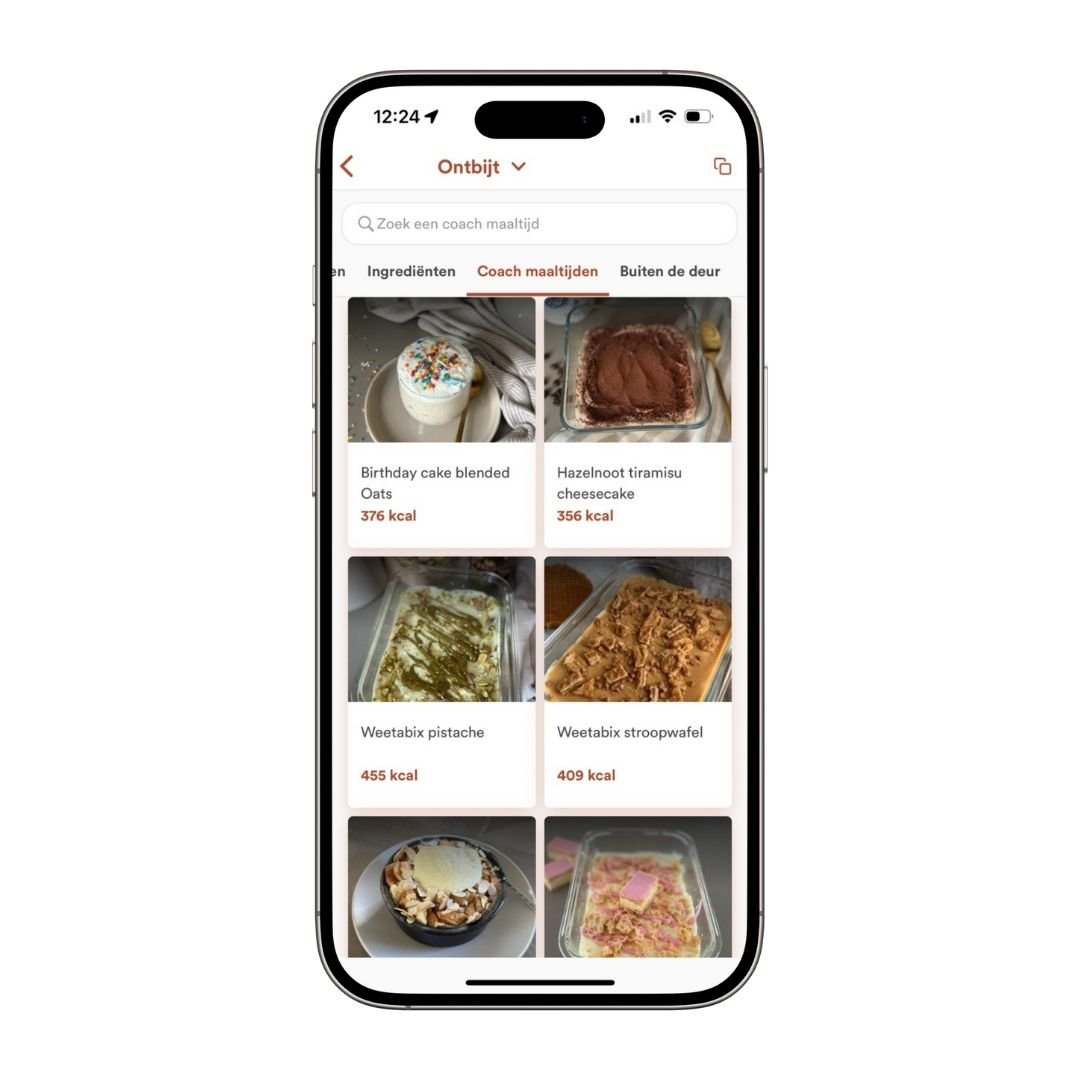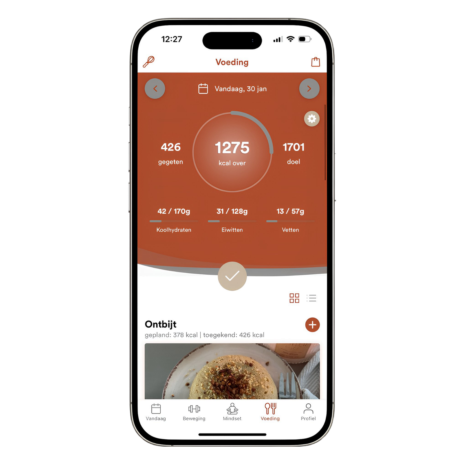 Bij elk recept staat duidelijk vermeld hoeveel calorieën en macro’s het bevat. Zo maak je bewuste keuzes en krijg je grip op je voeding, zonder ingewikkeld rekenen.
